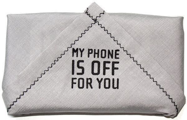 Гаджет PhoneKerchief (если его можно назвать гаджетом) представляет собой кусочек ткани, размером с носовой платок. Ткань изготовлена из специального материала, блокирующего прием и отправку телефоном радиосигнала. То есть, если завернуть свой сотовый телефон в такой «платок», он не побеспокоит вас в самый ответственный момент. На платке имеется надпись «мой телефон выключен для тебя», который вы показываете вашему собеседнику, насколько вам важна встреча с ним.